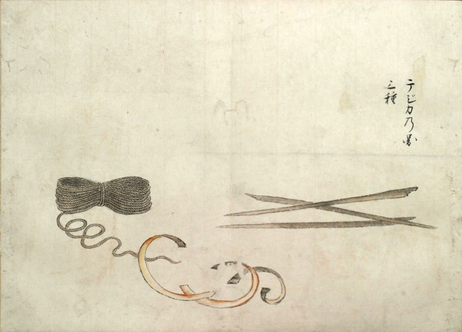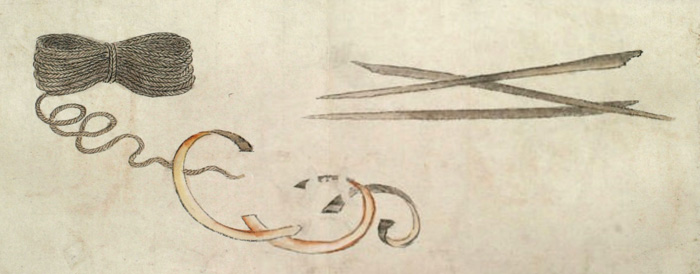 彼らが作る樹皮の綱[ヤ]は見事であり、細い撚糸から九インチ[23センチ] もの太さのある太綱まで、あらゆる太さに編む。