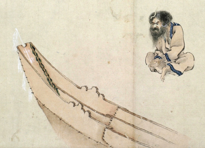 舟の製作終りて舟神を祭る圖
