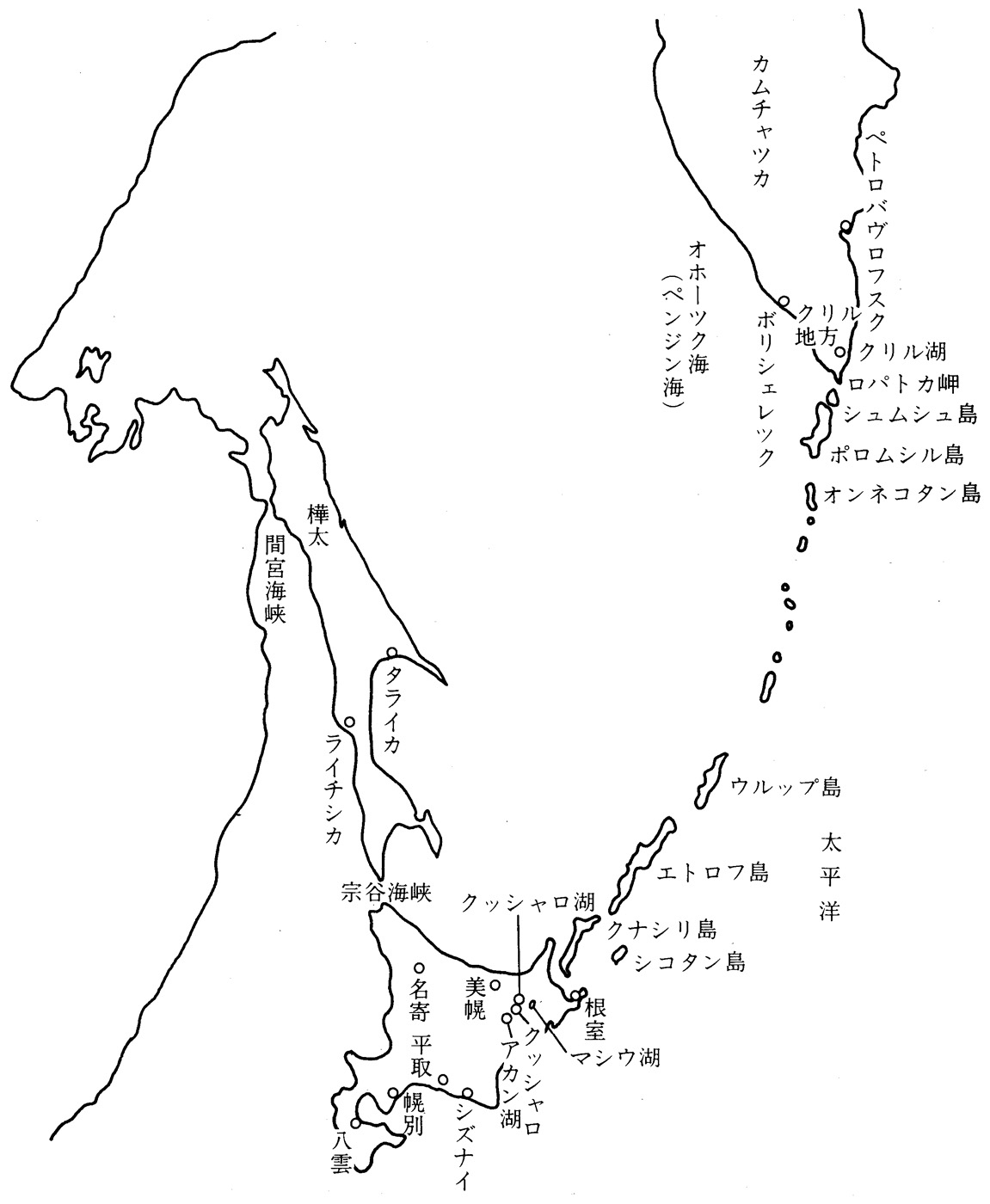 アイヌはもと千島(クリル列島), 樺太, 北海道に住み, それぞれ, 千島アイヌ, 樺太アイヌ, 北海道アイヌと呼ばれた.