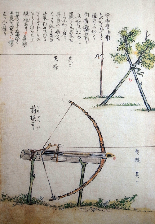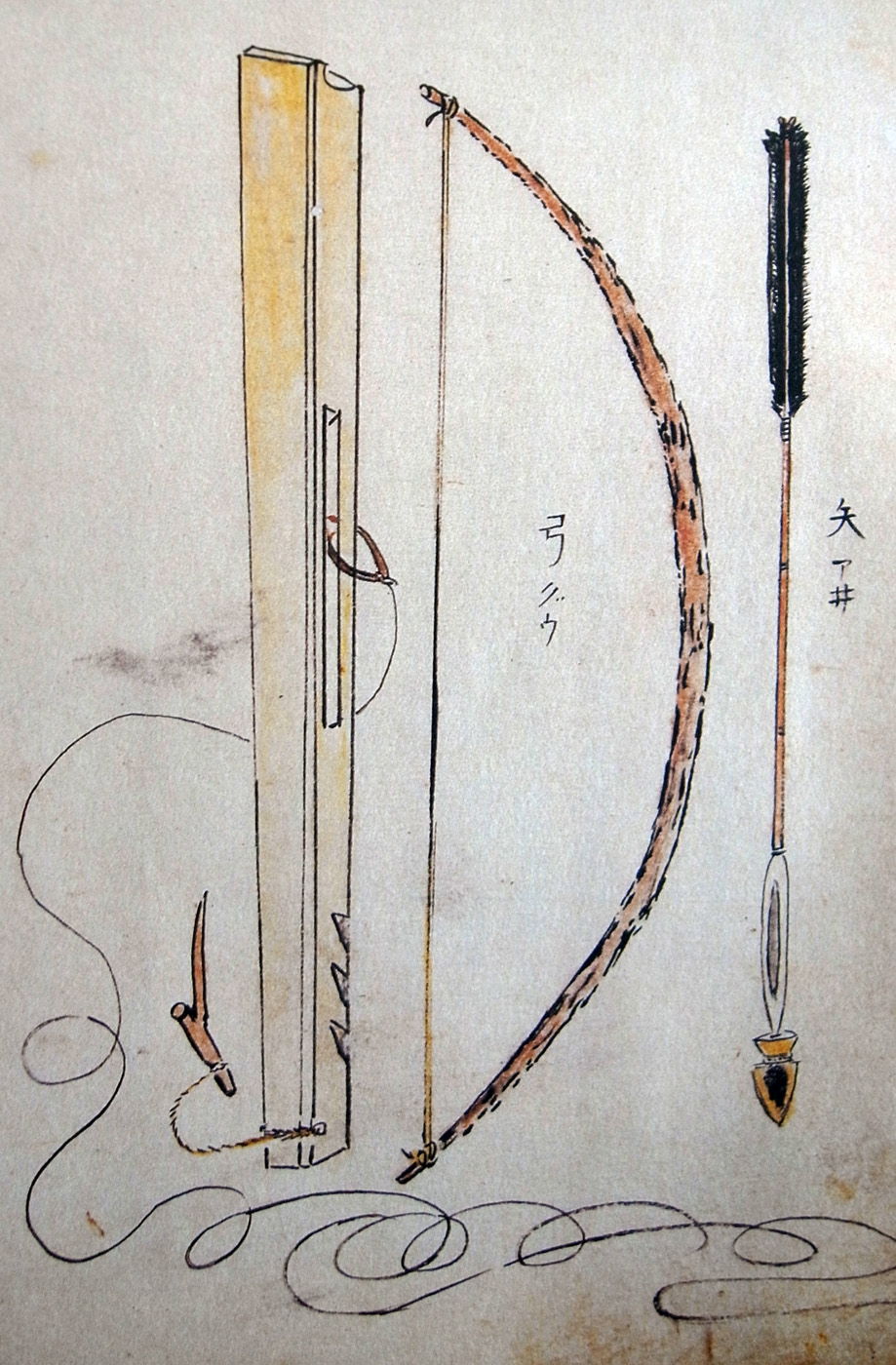 又楼弓のごとく弓を曳き曲ひて、これをアヰマップとてこの弩(ど)を野山におくに、獣の大なると、さゝやかなると、其身の長を図るに