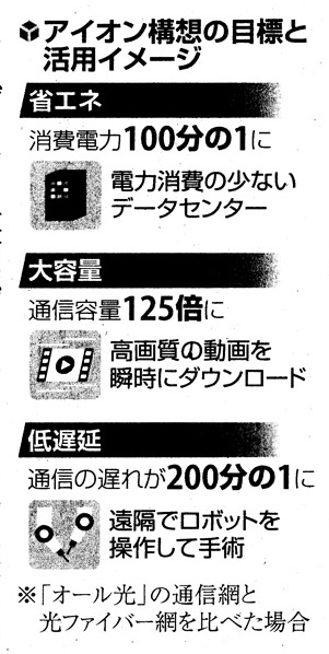 尤も,ネット上にも「アイオン (IOWN)」の意味を捉えているような記事は見当たらない。 の「IOWN」ウェブページをなぞったものばかりの IOWN とは,こういうものではない: ![]() 事実はどうか。 IOWN は,NTT の専用回線 (end-to-end 回線) 挽回構想である。 インターネットは,一般道路である。 運転規則の「TCP/IP」を守れば,みなが使える。 その規則の意味は,「データをまるまんま運ぼうとするのではなく,小さなパケットに この方法により「一般道路」が実現する。 インターネットは,送り元が色々のパケットが流れる一般道路である。 多種多様な車が走っている一般道路を,インターネットのイメージとせよ。 この一般道路の革新性は,グローバルな一般道路だということである。 便利なので,皆がこれを利用するようになる。 そうすると,「混雑」と「犯罪」が問題になってくる。 「混雑」は,遅延の問題になる。 「犯罪」は,セキュリティ・コストの問題になる。 ここに,「遅延がない道路」「安全な道路」の需要が見込めてくる。 そこで,ソルーションとして「ハイグレードな光専用回線」を売り出そう,の動きが出てくるというわけである。 これが,NTT の IOWN である。 いまの若い人は知らないだろうが,NTT は昔は日本電信電話公社 (「電電公社」) と言って,通信専用回線の会社だったのである。 営業の中心は,電話。 その電話は,インターネットを使うパケット通信電話にとって替わられ,NTT は外見がケーブル屋 (「土管屋」) みたいになってしまった。 しかし,専用回線プロの技術を高める努力は,営々と続けて来たというわけである。 この時代,専用回線の挽回は,よほどハイグレードなスペックを見せつけてこそである。 それが,つぎの PR である: ![]()