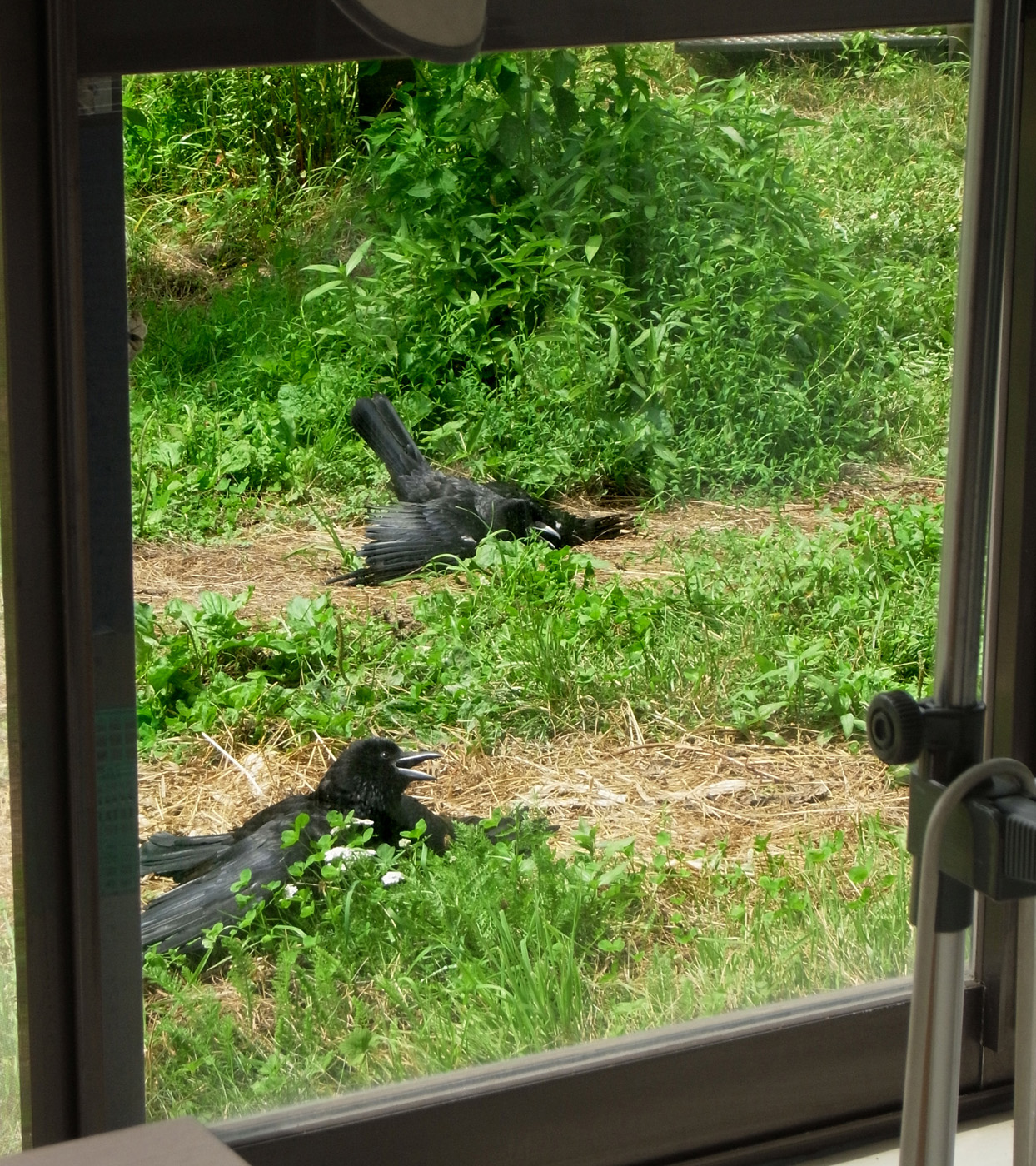 口が開いているのは「喘ぎ呼吸」というもので,これで体温を逃がしている。