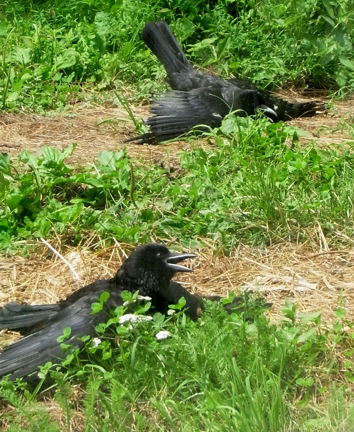 ♂が日光浴しているところに,後から♀が来て日光浴に加わる