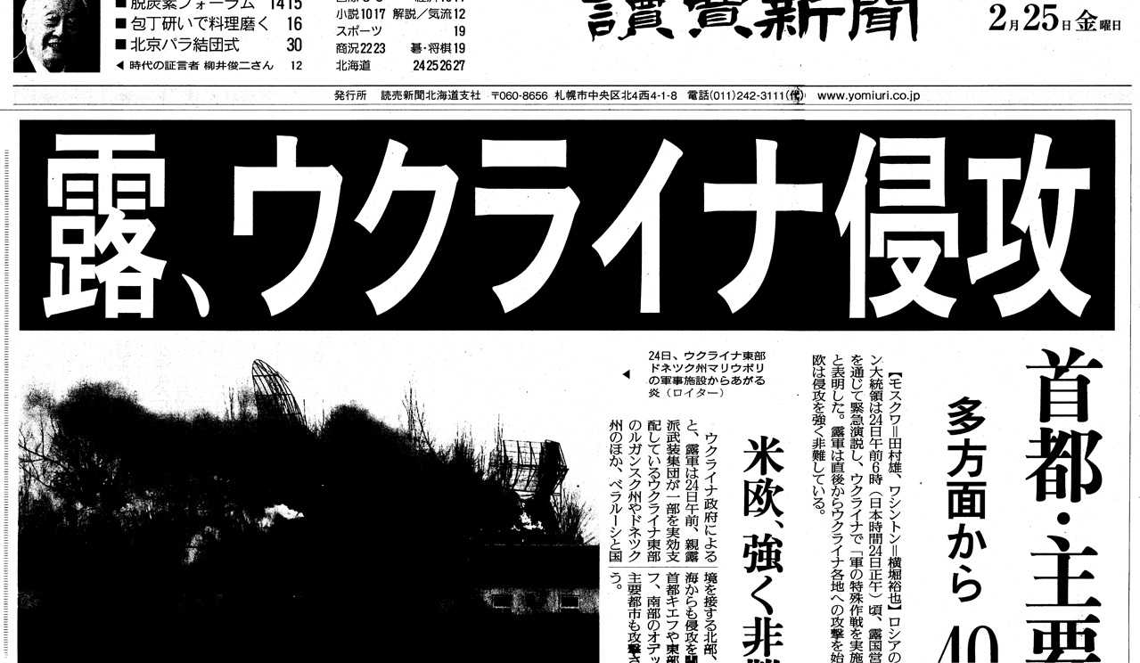 20〜27日は,「ロシア軍ウクライナ侵攻」も重なって,1, 2面の大見出し記事無し