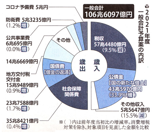 政府は21日、2021年度予算案を閣議決定した。
