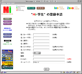 - 同時に,ID ナンバーを付した申請確認のメールを送信する。メールの標題は「MI-STUDENT [serial number]」で,送信者は「webmaster」。