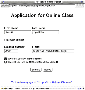 The application for taking lectures is done online, that is, input forms in WWW pages are used.