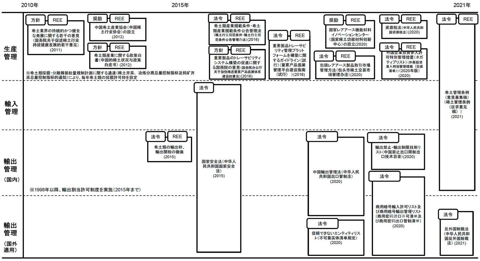中国における主なレアアース生産・貿易管理関連政策