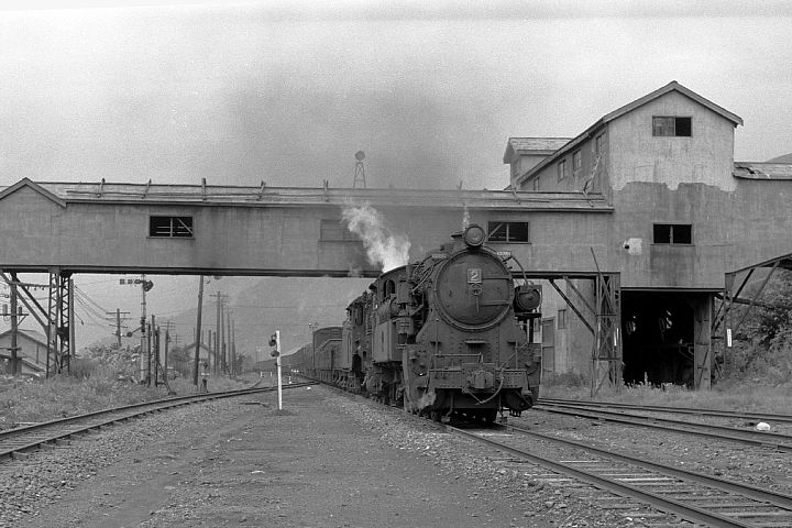 2号(4110)+6号(9600)の重連貨物列車が盤の沢に到着 (1968-8-9)