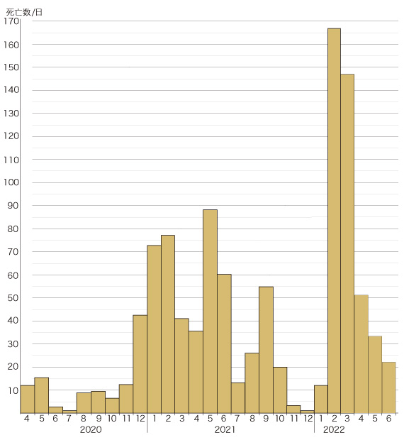 死亡数(累積) と1日あたり死亡数