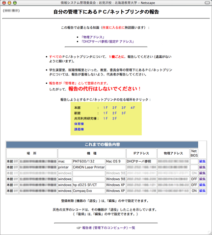 「自分が管理しているネットワーク機器/端末」を教員が自己申告すると,