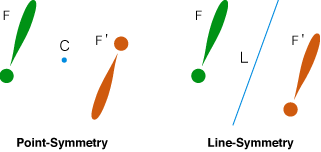 Thus, two types of symmetrical relations hold : "point-symmetry" and "line-symmetry".