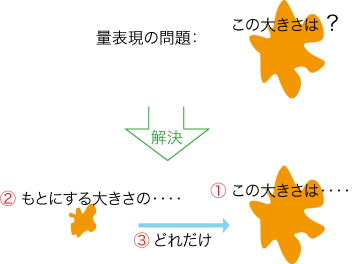そこで,2量の比 (倍関係) を表す道具をつくれば,量表現ができることになります。