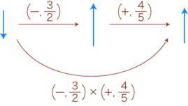 向きの変換に関しては,最初は反転 (−) でつぎは同方向 (+) ですから,あわせて反転 (−) になっています。