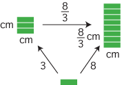 この長さをタテの長さとし,ヨコの長さが同じである長方形をとります。これによって,左右の長方形が 3 と 8 に共約されます: