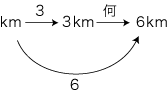 問題 3km/h では,何hで6km か?