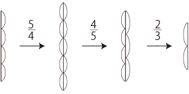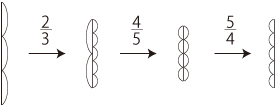 これは,言い換えると,「<3等分して2つ>をして,<5等分して4つ>をして,<4等分して5つ>をする」。