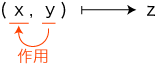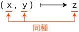 「×」の記号の使用は,「数 × 数」に限ります。 ──これが記号「×」の文法です。 そしてこの場合,つぎの形になります: 数学では,一般に,つぎの形の関数を「算法」と呼びます: そして,この「算法」につぎの2種類を考えます: