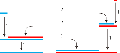 √2 の連分数表現は,ユークリッド互除法をつぎのように行うことで得られる: