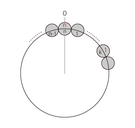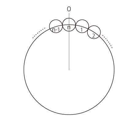 - 円周に,要素n個をきっちり並べる。