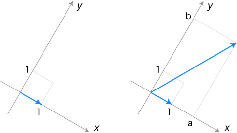 左辺のベクトルをもとに xy座標を作成し,この座標の中に右辺のベクトルをおきます: