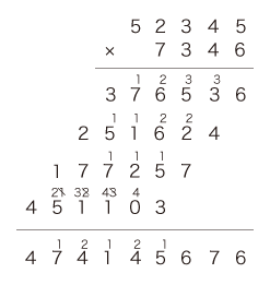 十進数の和積計算 (「筆算」) は,小学校低学年で指導される。