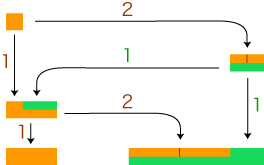 参考:ユークリッドの互除法 分数倍の値は,試行錯誤的に物を操作して求めるしかないように,一見思われます。しかしそうではありません。分数の値を求める手順があります。言い換えると,分数を値とするきちんとした測定法があります。 ──以下がそれです: この手順 ( 余り同士の互除を,余りがなくなるまで続ける) は,ユークリッドの互除法と呼ばれています。 ユークリッドの互除法を使うと,つぎの両方が同時に得られます: |