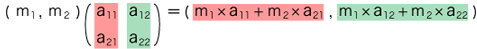 またこれより,上の4つの数の組 (「行列」) が単位換算のときの a に対応していることが,見てとれます。