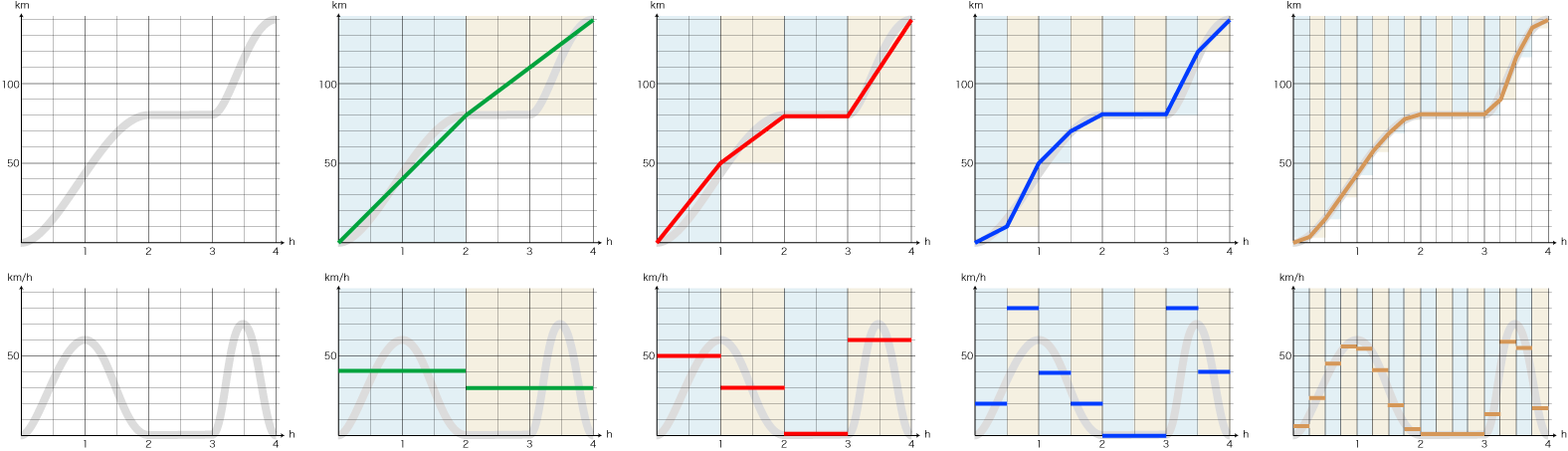 - 速度の変化のグラフから移動距離の変化のグラフを導く: