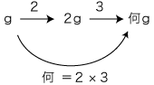 問題 2gの何倍が6gか? 2gの3倍は何gか? 何gの3倍が6gか?