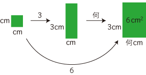 Up 面積が6cm2,タテの長さ3cm の長方形のヨコの長さは?
