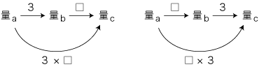 また,「3×□」「□×3」の意味は,つぎのようになる: