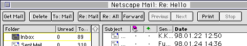 6. If there are mails, Netscape download them into the harddisk of your computer.