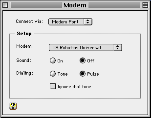 Setting "Modem" (Control Panel)