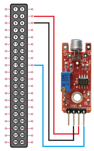 つぎのプログラムを走らせ,音の発生でプログラムが "Sound Detected!" を知らせて終了することを確認: