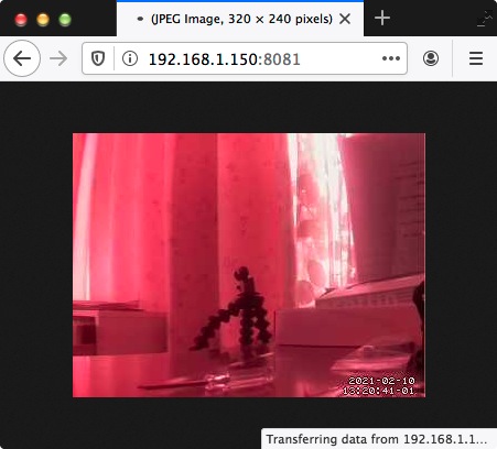 ブラウザがつぎのページになる: ![]() ここで,192.168.1.150 が RasPi の IPアドレス。 また,画像がこんな色なのは,カメラが赤外線カメラであるため。 ( LOTW 5MP 1080P)