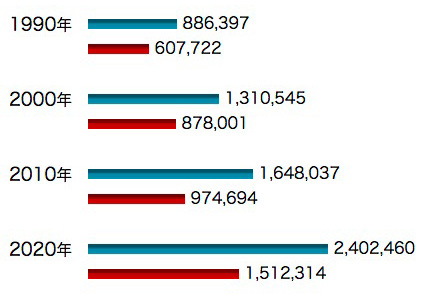 2020年では,ほぼ 50人に1人が外国人である。 2010年から2020年までの10年間で,日本人の人口は 1億2806千万人から1億2615万人へと 191万人減少。 そしてこの間,外国人が 75万人増加。 外国人移住者によって日本の人口が保たれるという状況ができつつある。 これは,先進国の例に漏れず,日本も「移民の国」になっていくということである。 移民がこの先コンスタントに増えていくかどうかは,日本の産業のいまの衰退が止まるかどうかにかかっている。 そして,日本の産業の再生も,移民の力を頼みにしていくというわけである。 |