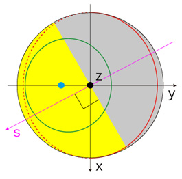 地球の中心を通り太陽に向く軸を,s軸とする。