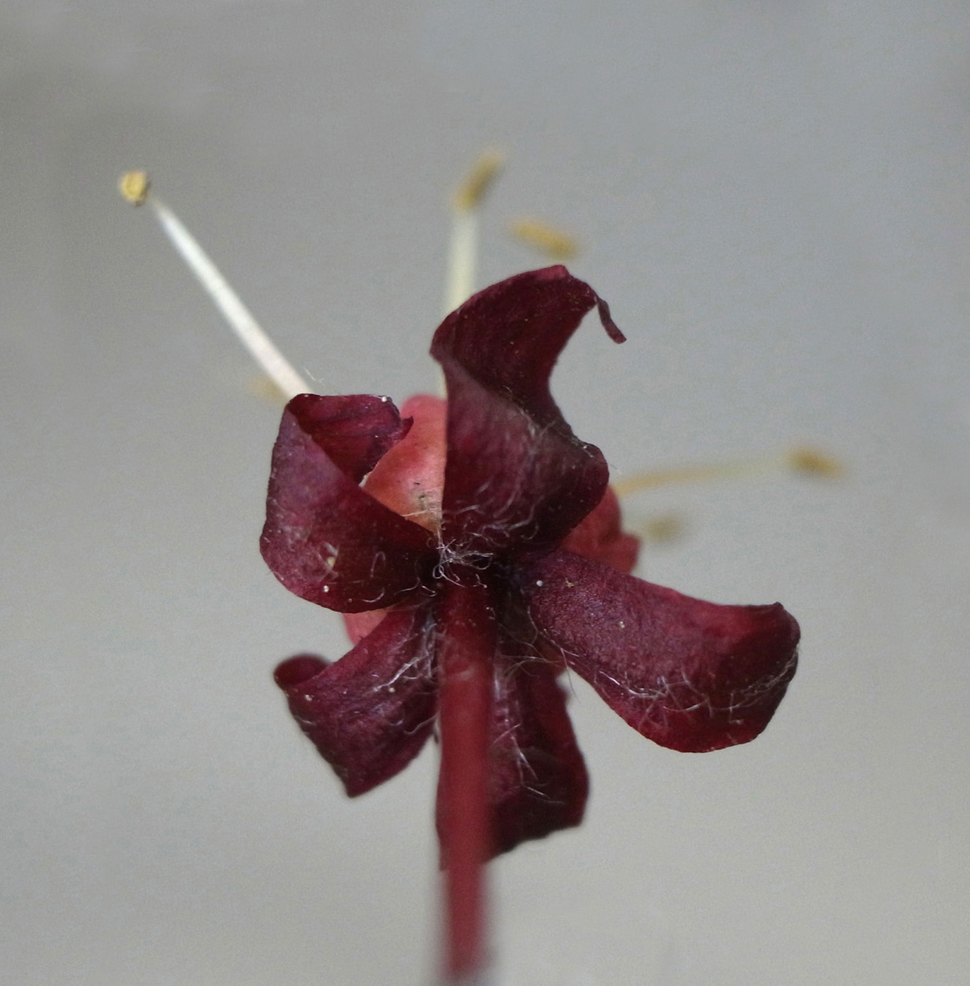 雄花 : 長い花糸をもつ雄しべが8本あり,雌しべがない