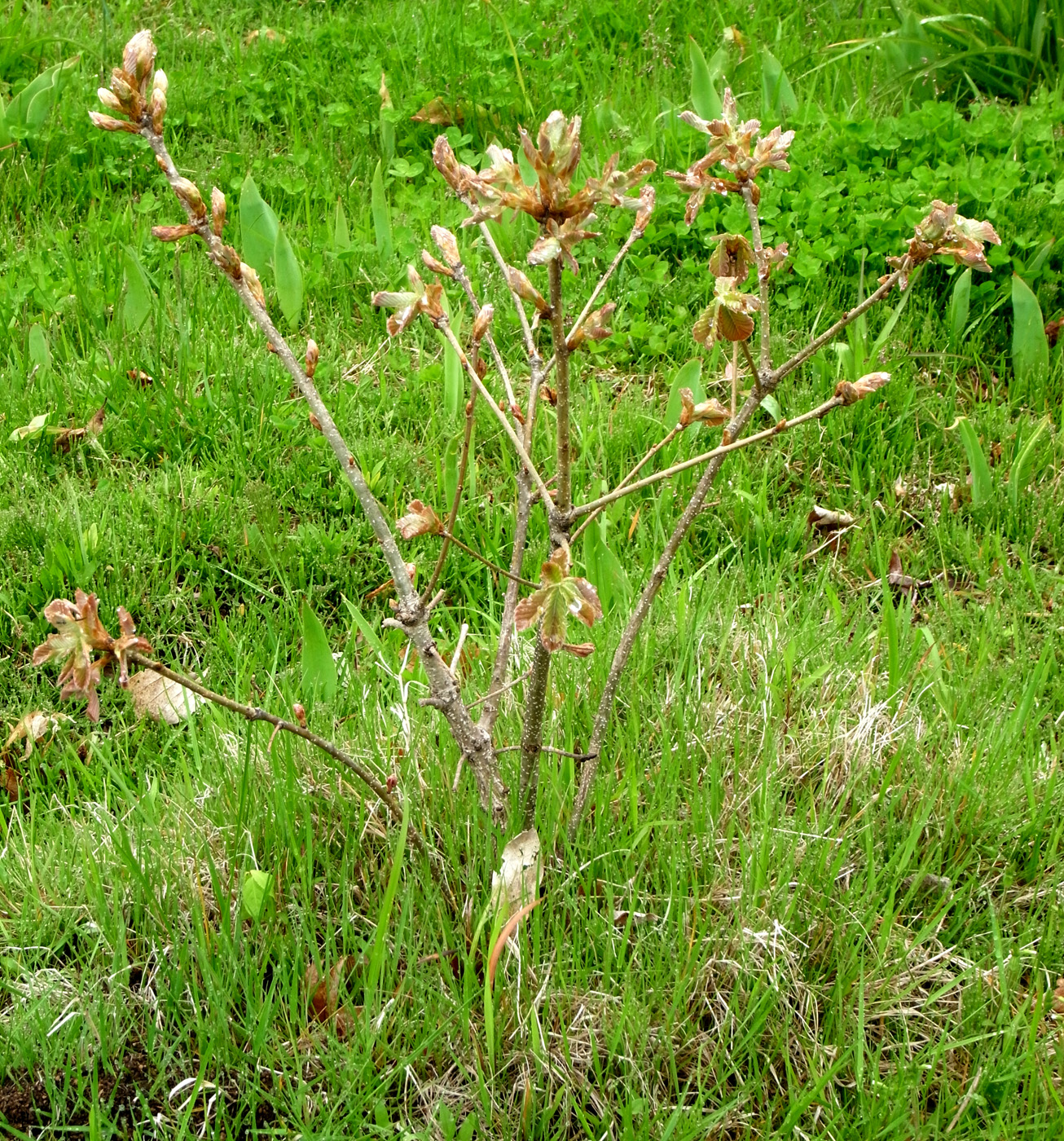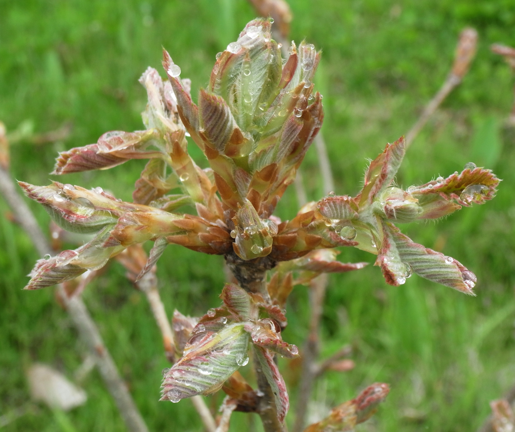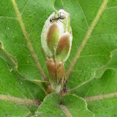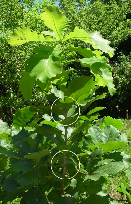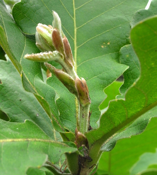 カシワの芽吹きは,クリやミズナラのそれからだいぶ遅れる。