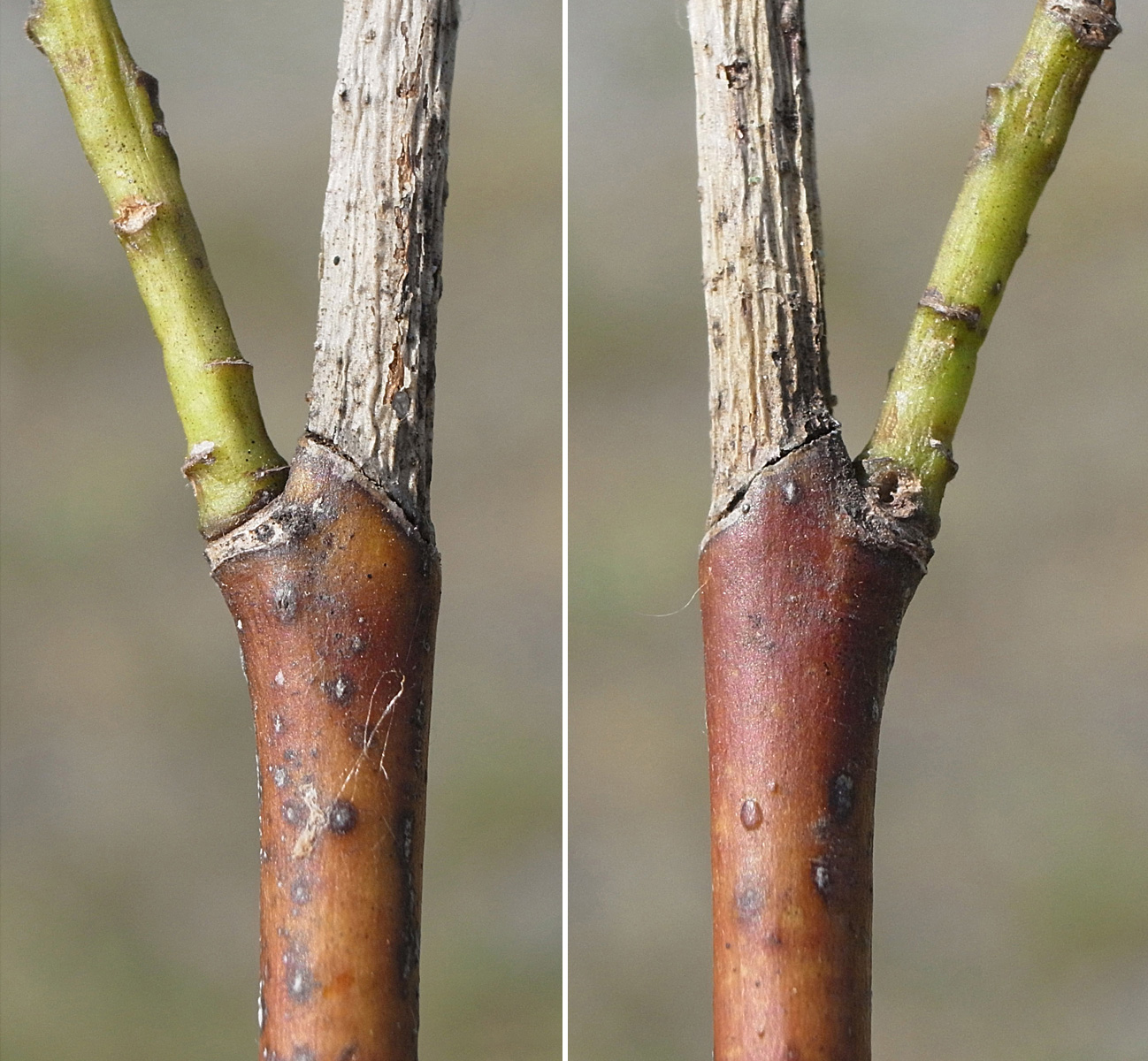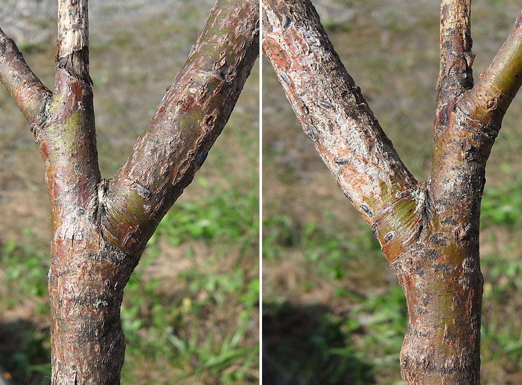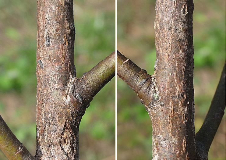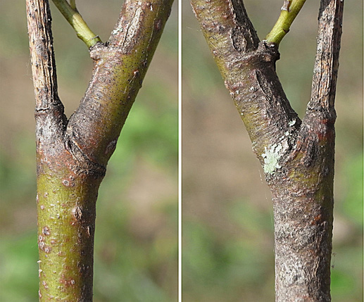幹が直径 2.5 cm の若木の枝