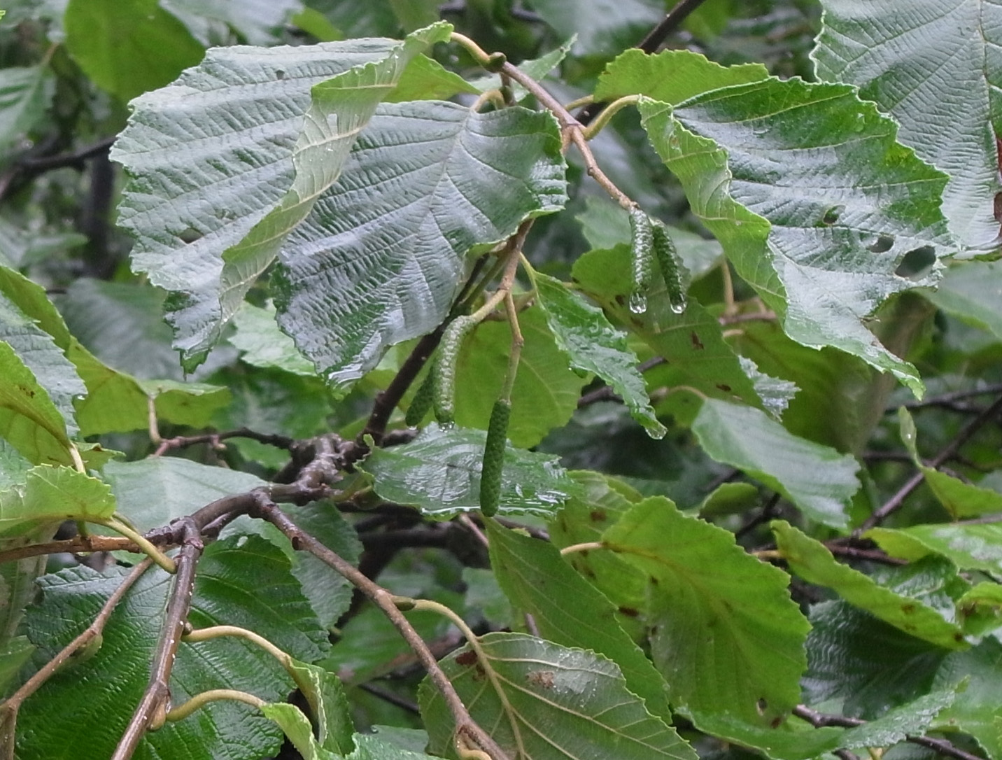 ケヤマハンノキは,雌花序の冬芽も裸出する。