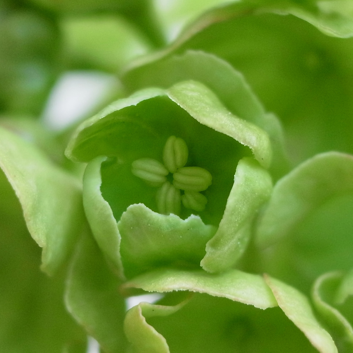 花の色が,はじめの緑からだんだんと白に変化する。