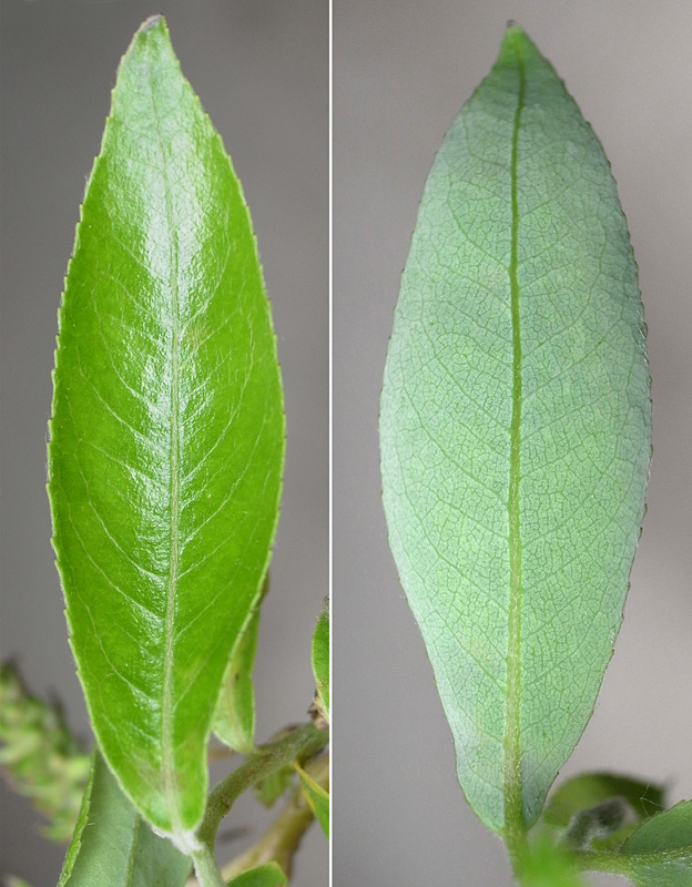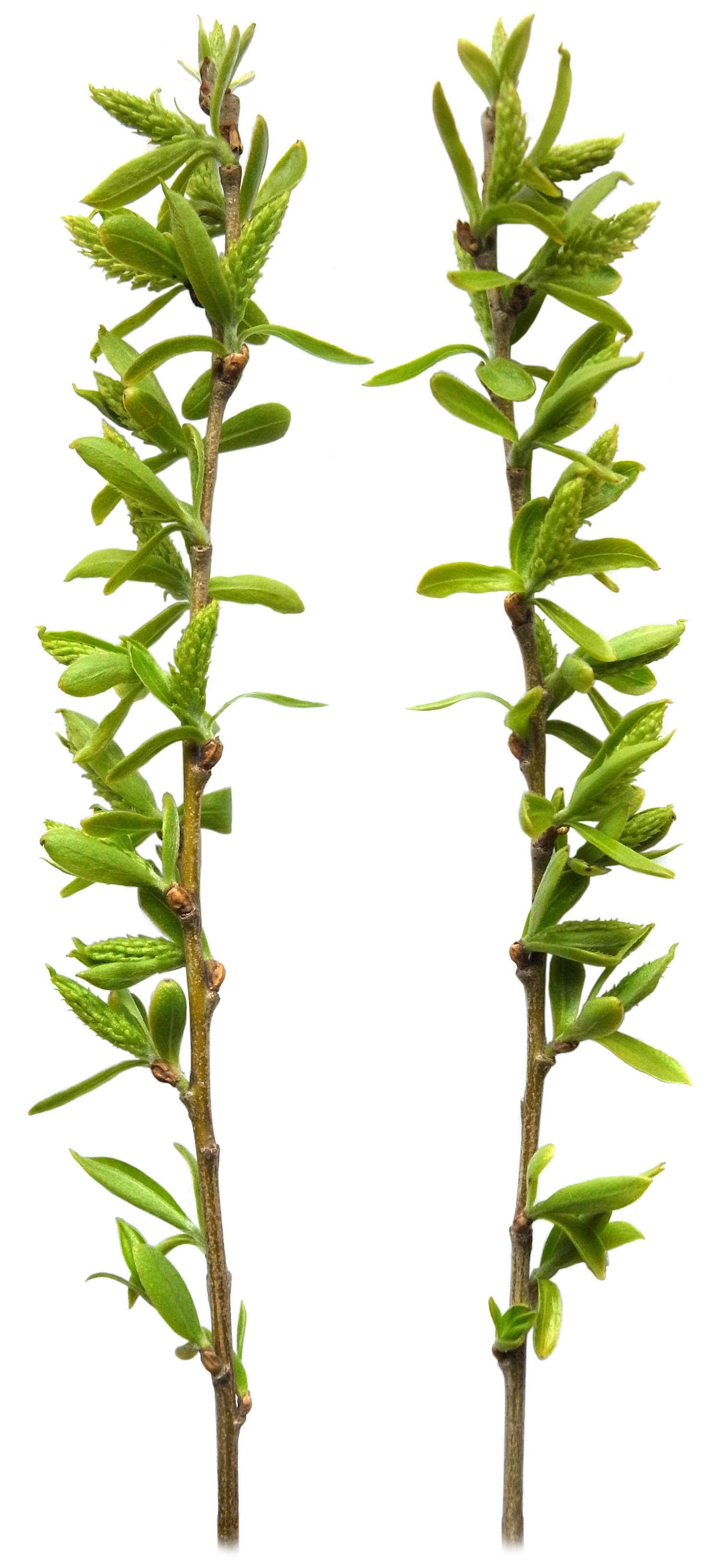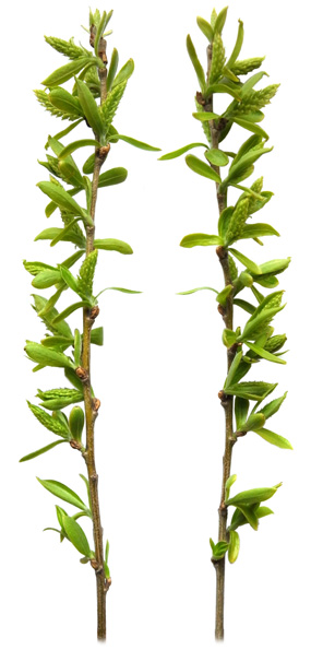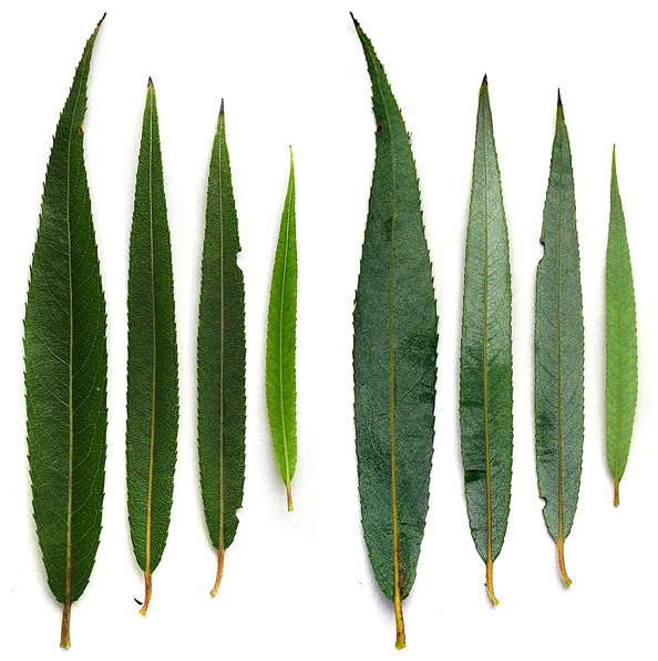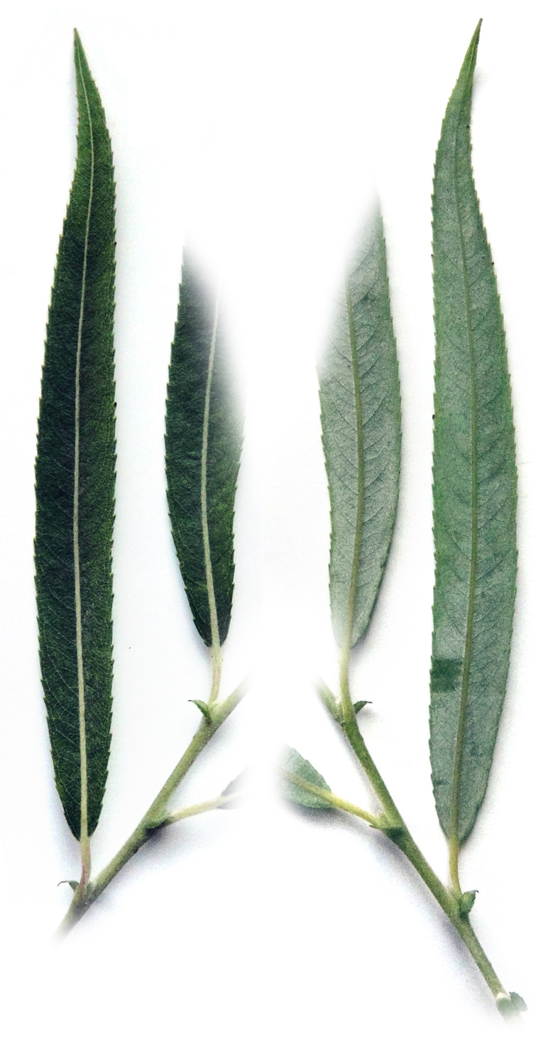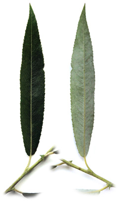 シダレヤナギとシロヤナギの中間の形状を示す。