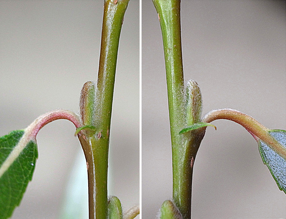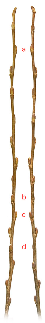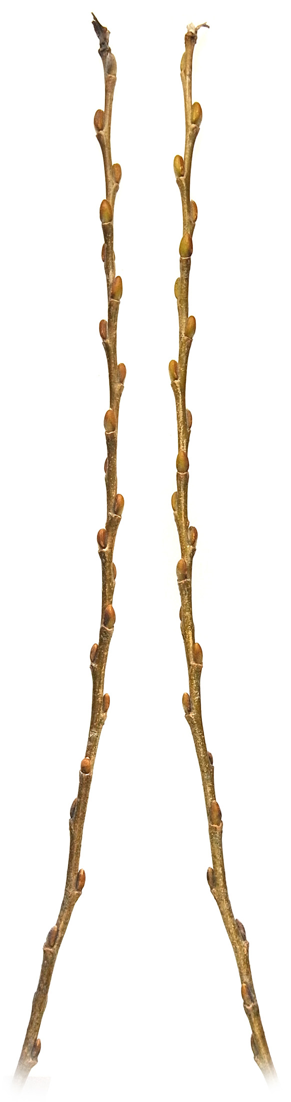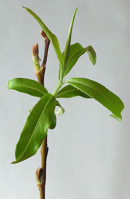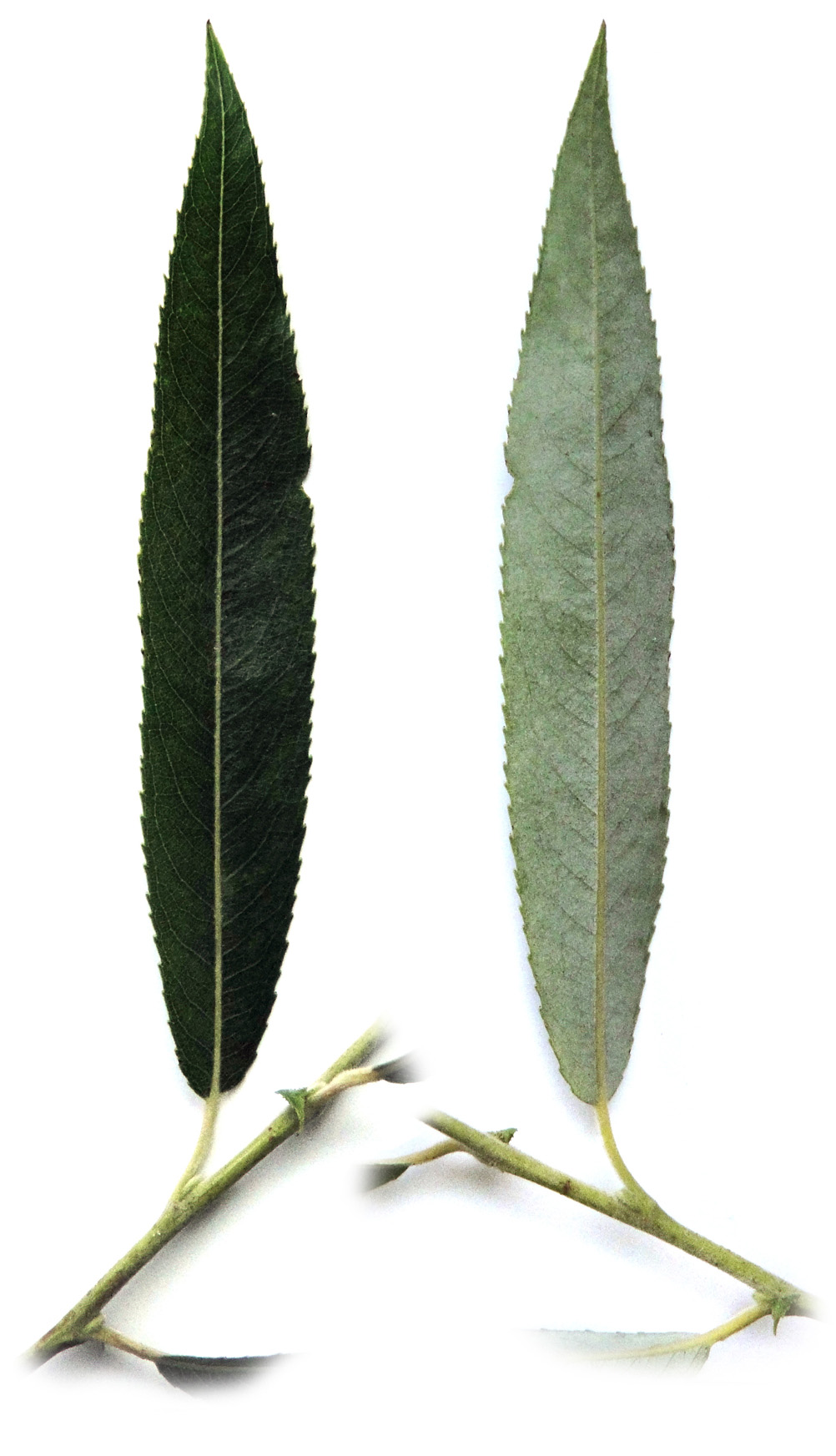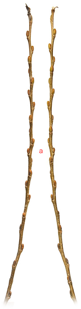 シダレヤナギとシロヤナギの中間の形状を示す。