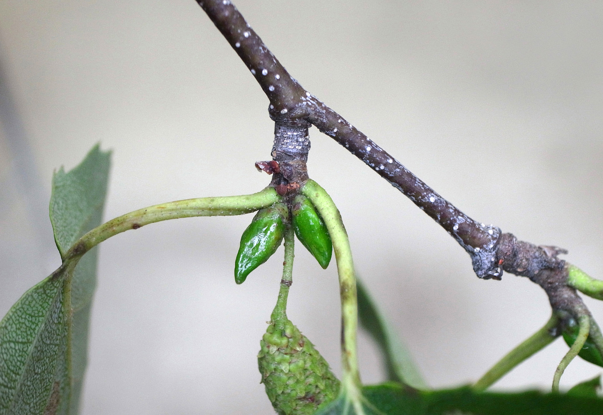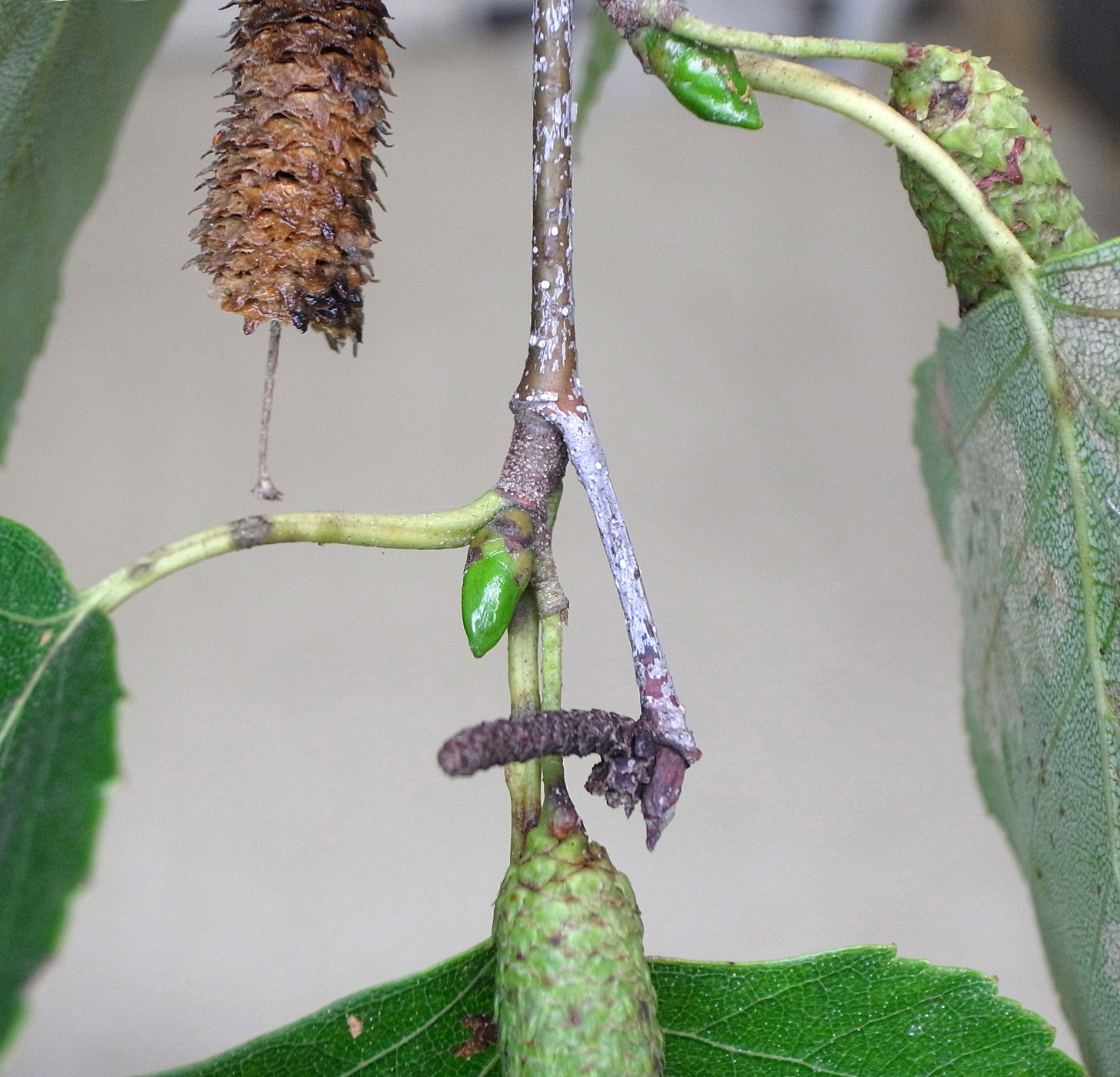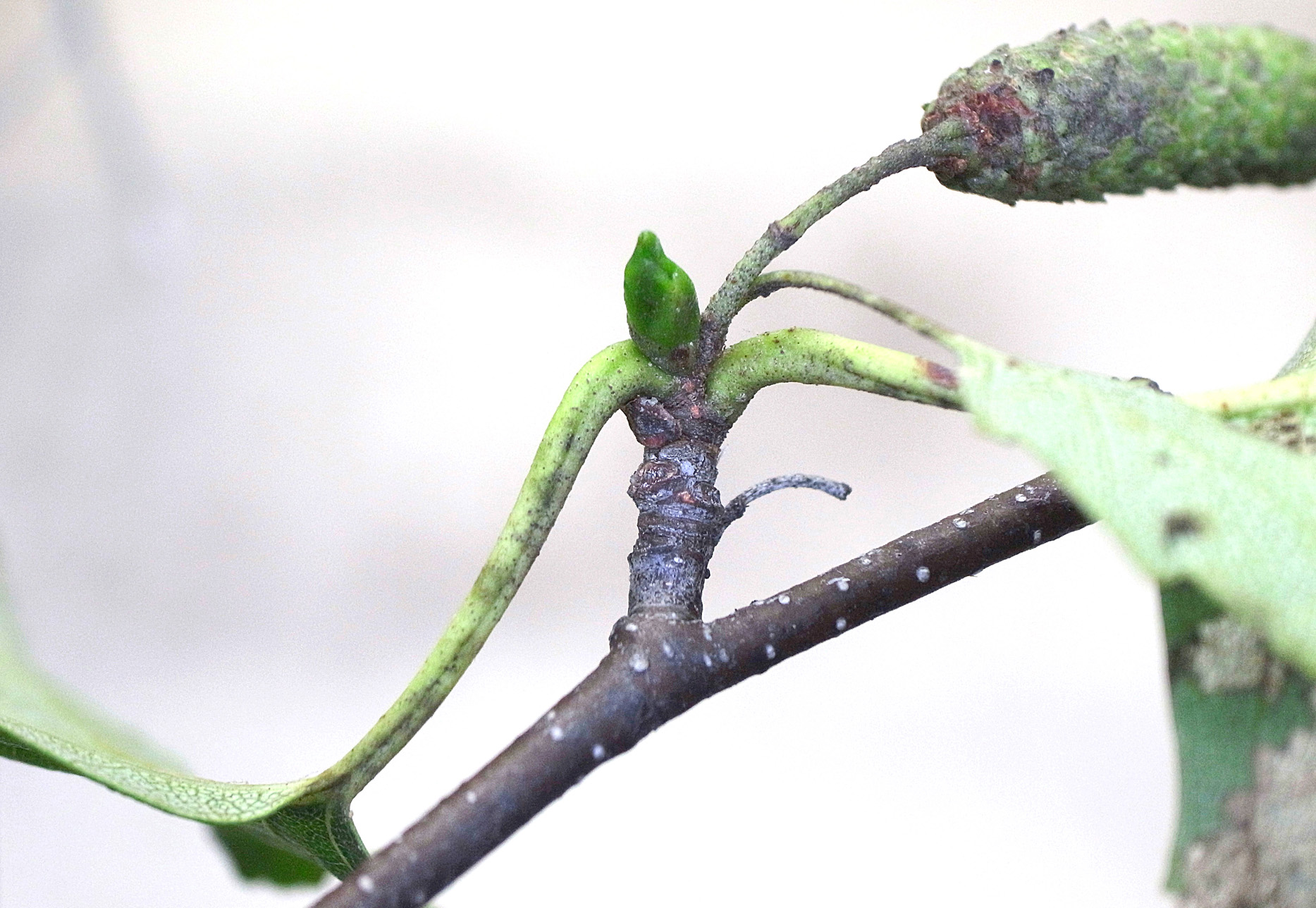 当年枝の先についた雄花の裸芽