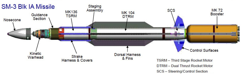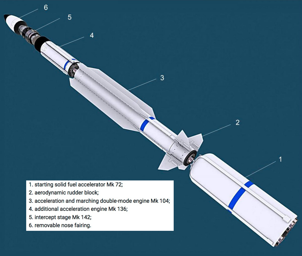 | The Mk 142 intercept stage is a self-propelled device with a cryogenic IR-GSN matrix, several processors, a solid fuel propulsion system for maneuvering and orientation (DACS), a power supply and a number of other subsystems on board. |
