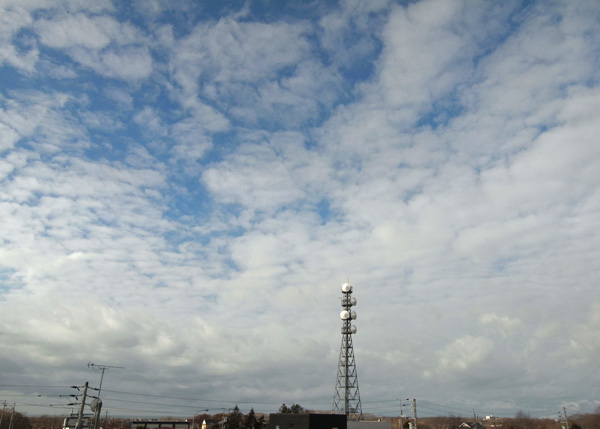 高層雲が広がり,その下の層積雲がちぎれ雲ふうになる