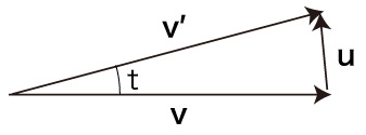 ベクトル \( \bf{v} \) の転向ベクトルは,つぎの図の \( \bf{u} \) である: