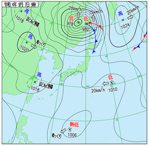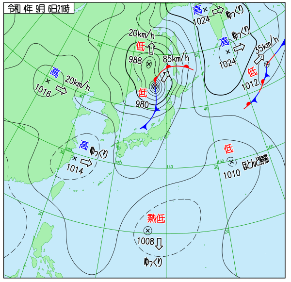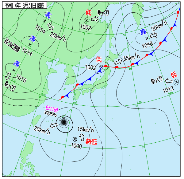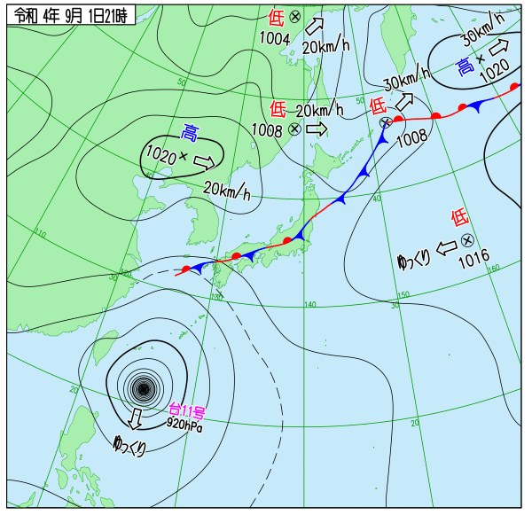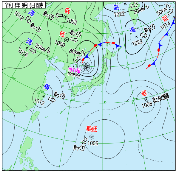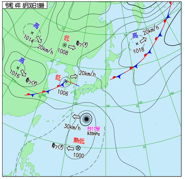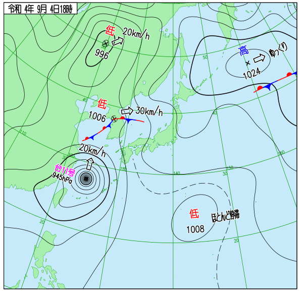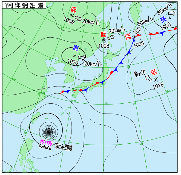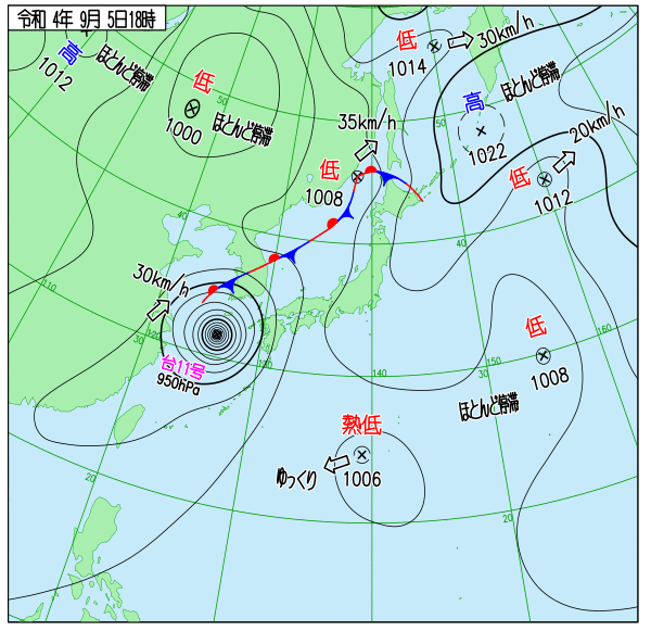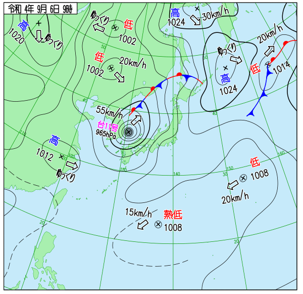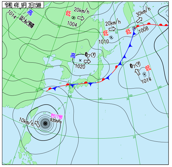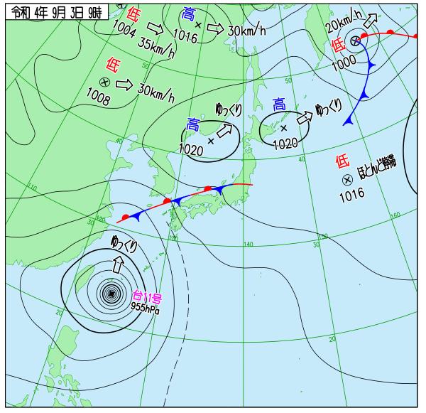 2022年台風11号 地上天気図